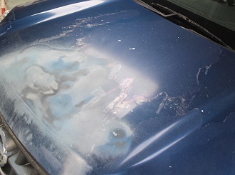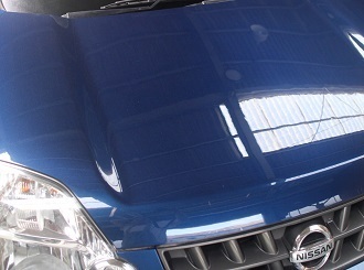 こちらのお車は、ボンネットの塗装が剝がれてしまっています。クリヤ層やカラー層、下地層が深く剝がれていくと、錆が発生しやすくなります。こちらを塗装させていただき、ムラなくきれいに仕上がりました。